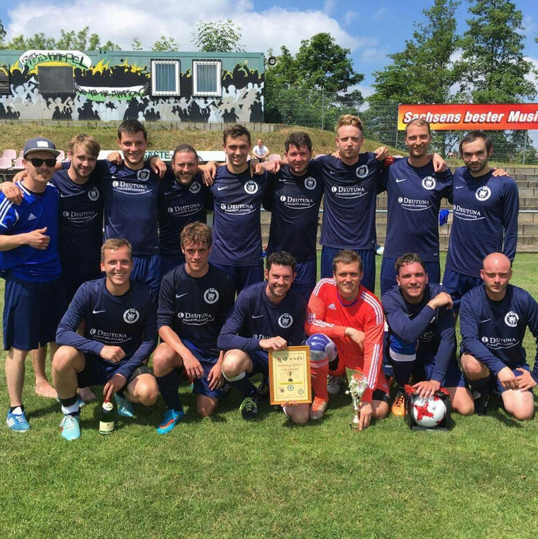 | Kreisklasse-Meister 2017: Vom Ballermann eingeflogen und Autokorso zum Ortsjubiläum |Spielbericht letztes Saisonspiel: Da ist das Ding! Nachdem eine Altenhainer Delegation die vergangenen Tage am Ballermann weilte, wurden die Jungs heute morgen zum Aufstiegsspiel gegen die Grüna-Reserve eingeflogen und lieferten eine unfassbare Leistung in Durchgang eins ab. Kleinfeld machte den Auftakt, klinkte nach zwei Minuten einen Freistoß ein. Kurze Zeit später war Zerle nach Plieninger-Ecke mit dem Kopf zur Stelle, ehe Kleinfeld wiederum nach Plieninger-Ecke einnickte. Dann schob Hüper einen Mädler-Querpass ein, 4:0. In Hälfte zwei ließen die Jungs nichts mehr anbrennen. Damit sind die Altenhainer als Tabellenerster sicher aufgestiegen. Herrlich.Spielbericht Meisterschafts-Playoff: Im zweiten Meisterschaftsspiel gegen Kappel III machte die Truppe die 1:2 Niederlage aus dem Hinspiel wett, fegte die Gastgeber mit 5:0 vom Platz, sicherte sich so die Kreisklasse-Meisterschaft. Nach Waldowski-Flanke nickte Hüper zum 1:0 ein. Danach war nach Gerlach-Pass Mädler durch, schob an den Pfosten und staubte selbst ab, 2:0. Halbzeit. Nach Wiederanpfiff dieselbe Kombo: Gerlach bediente Mädler im Sechzehner, der mit links in die "Lange" vollendete. Dann erhöhte "Goldjunge" Bilzer nach einer abgewehrten Ecke per Schuss vom Sechzehner auf 4:0. Interims-Kapitän Kleinfeld setzte dann den würdigen Schlusspunkt der Spielzeit, schweiste den Ball aus knapp 30 Metern in den Winkel, 5:0. Im August wurde die Meisterschaft beim Autokorso durch Altenhain zu den 700-Jahr-Feierlichkeiten noch einmal kräftig gefeiert.// Links: