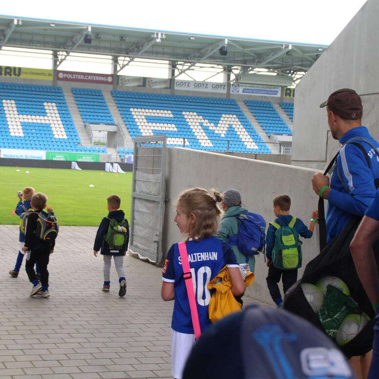 | Erste Turnierluft auf großer Bühne: Unsere Kleinsten dribbeln im Gellertstadion |Auszug Facebook-Post: Unsere Kleinsten schnupperten zum ersten Mal Turnierluft - und das gleich im großen Stadion an der Gellertstraße zum Funino-Turnier im Rahmen des "Sporty meets Chemnitz" Events. Kinder, Trainer und Eltern waren mächtig aufgeregt. Mit zwei Altenhainer Teams (von 16) ging es dann in den Turniermodus, bei dem 5-Minuten-Partien parallel auf acht Minifeldern mit jeweils vier Toren gespielt werden. In jeweils sieben Spielen schlugen sich unsere Bambinis tapfer. Die G2 begann auf Feld 7 wuselte sich nach Startschwierigkeiten bis auf Feld 5 vor und landete nach den sieben Partien wieder auf Feld 7. Die G1 startete auf Feld 5, erreichte zwischenzeitlich sogar das Spitzenfeld und landete am Ende auf Feld 3. Die Kids hatten richtig Spaß, alle kamen am Ende zu einem Torerfolg und die anfängliche Aufregung verwandelte sich in echte Freude. Ein großes Lob an unsere Hangküken für die konzentrierte Leistung! Ein Lob auch an alle anderen Teams für das faire Miteinander. Und letztlich ein Lob an die Veranstalter für den schönen Turniertag auf diesem Teppich von einem Rasen!// Link: Facebook-Post